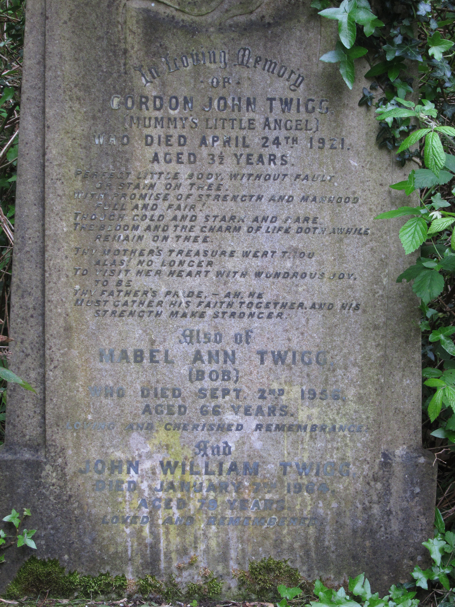 who died April 24th 1921, aged 3 1/2 years.